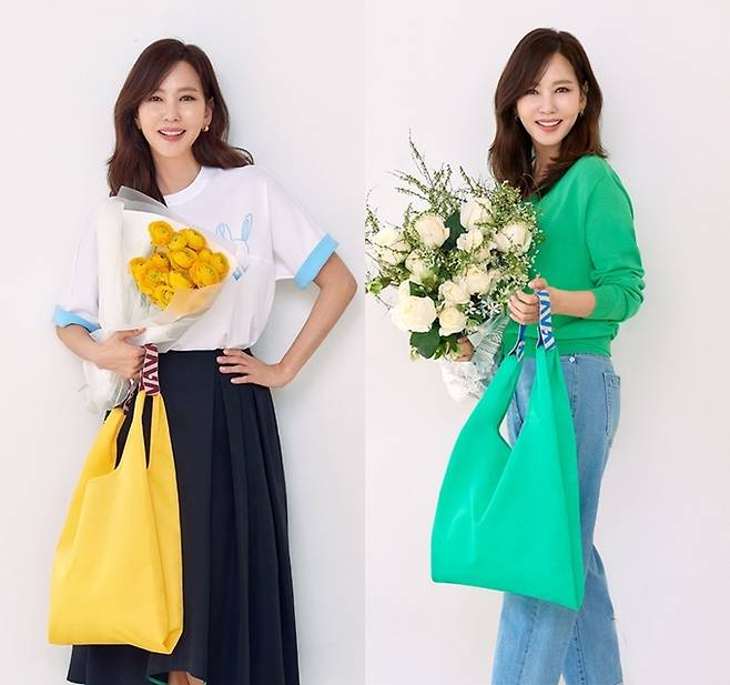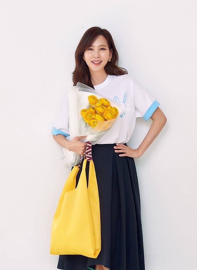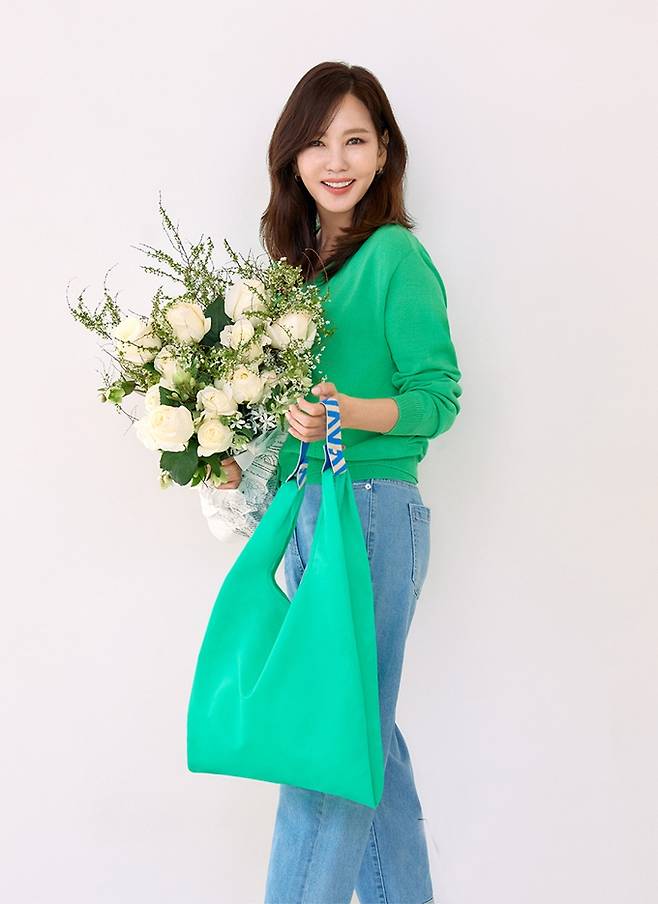 공개된 화보 속 김남주는 계묘년을 맞아 토끼를 모티브로 한 배색 프린팅 티셔츠와 녹색 카디건과 화사한 컬러감의 에코백을 착용했다.