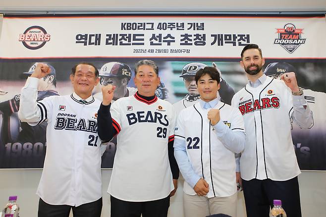 4월 2일 잠실구장에서 열린 개막전. 두산은 창단 40주년을 맞아 시대별 베어스 스타들인 박철순(1980년대)-김형석(1990년대)-홍성흔(2000년대)-더스틴 니퍼트(2010년대) 4명을 특별 시구자로 초청했다.