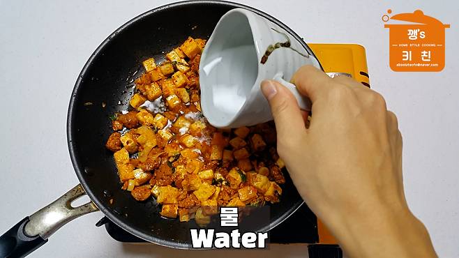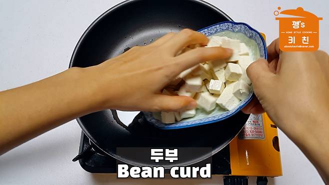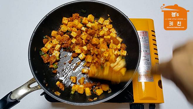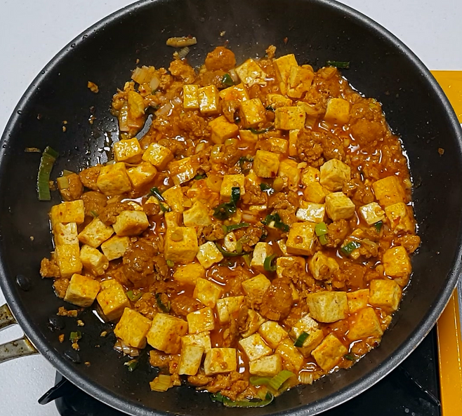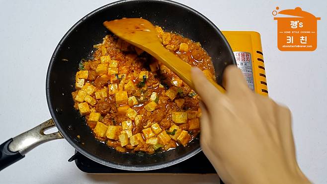 깍둑썰기 한 두부를 넣고 잘 펼쳐주세요