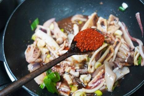 파가 노릇해질 때까지 볶아 파기름을 내주면 오징어볶음의 깊은 감칠맛이 살아나요.