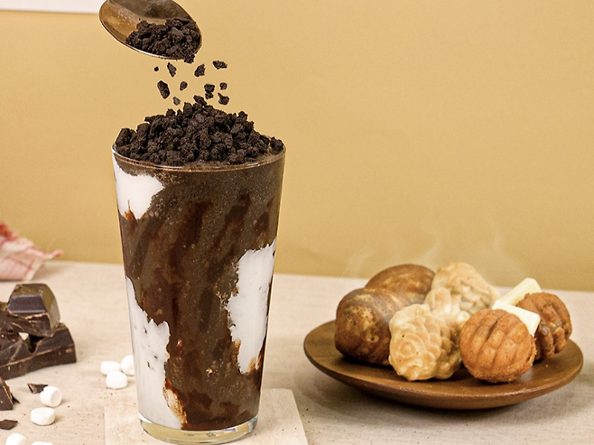 아까 말씀드린대로 화려하면서도 달콤한 메뉴가 많다고 했죠? 2022년 겨울에 히트한 '스모어 블랙 쿠키 프라페'가 그 대표적인 예입니다. 진한 초코 스무디에 바삭한 쿠키를 올리고, 마시멜로 잼까지 넣었죠.