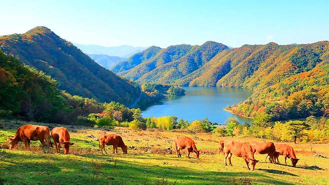 특히 방목된 한우가 초지를 자유롭게 오르내리는 모습은 이곳을 대표하는 장면으로 꼽힌다. 자연 풍경과 동물이 함께 어우러지는 이 장면은 사진 촬영 명소로도 자주 언급된다.