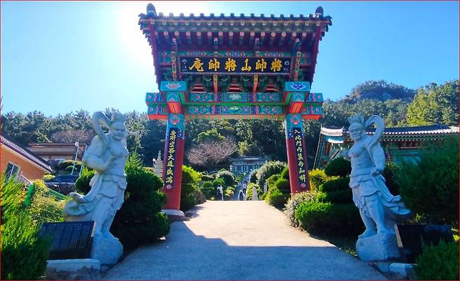 일주문 아래 108 계단:계단 위로 펼쳐지는 바다와 사찰 구조가 한 프레임에 담기는 명장면