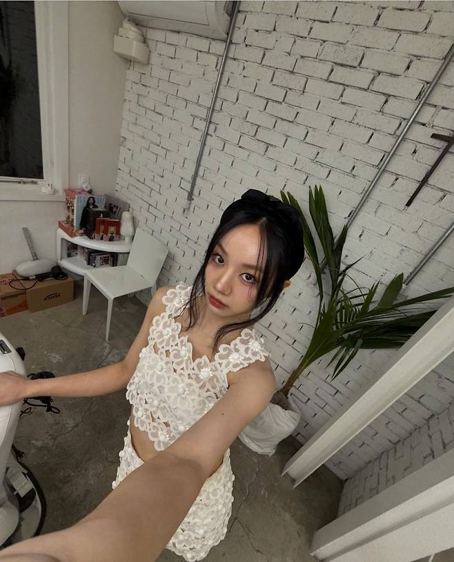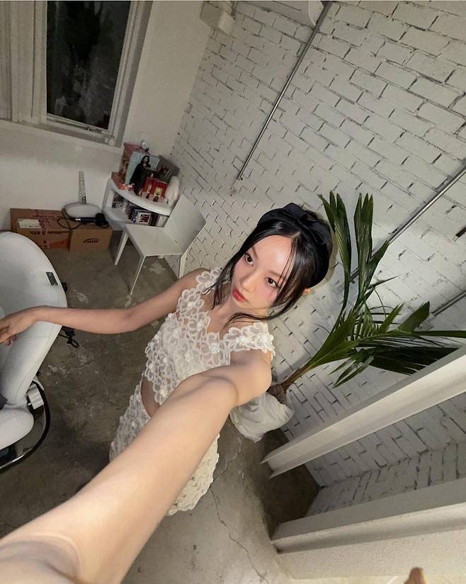 꽃잎을 연상시키는 레이스 디테일이 돋보이는 화이트 상의와 스커트를 입은 혜리는 사랑스러우면서도 여성스러운 분위기를 자아내며 한층 더 성숙해진 느낌을 연출했습니다.