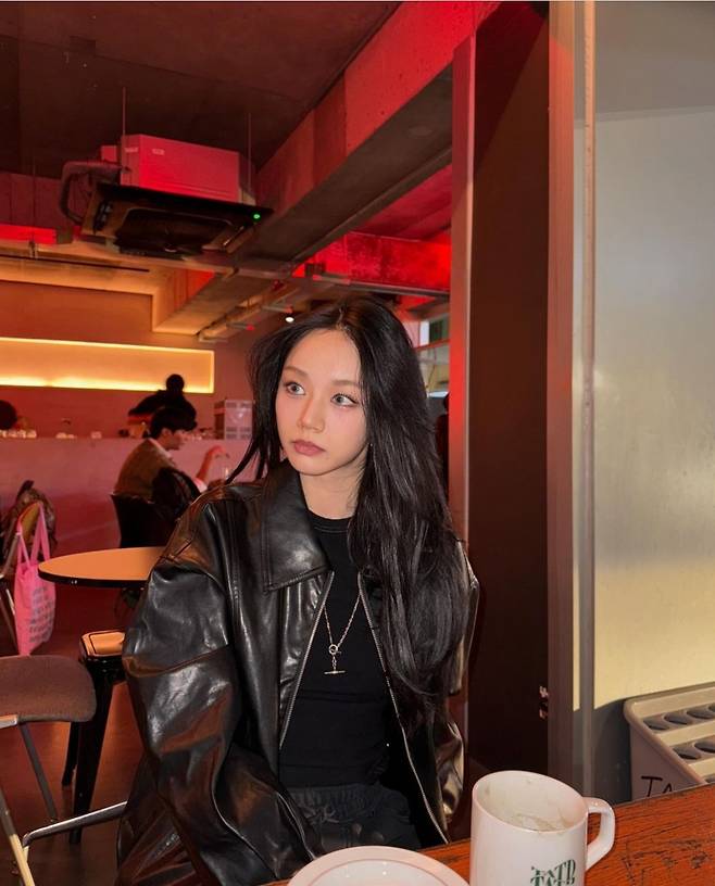 혜리는 시크한 가죽 재킷과 매끄러운 블랙 룩으로 강렬한 카리스마를 뽐냈습니다.