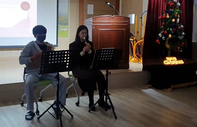 | ▲ 작년 겨울 학교 축제에서 3학년 학생과 내가 우쿨렐레+리코더 연주를 선보였다. 이날을 위해 매일 학생과 연습하는 시간조차 얼마나 신이 났는지. |