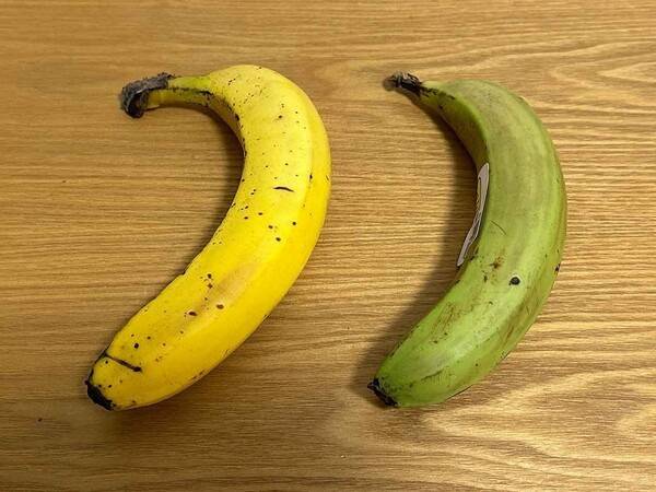 겉은 약간 푸르고 단단한 미숙 바나나는 레지스턴트 스타치(저항성 전분) 함량이 높은 상태입니다.