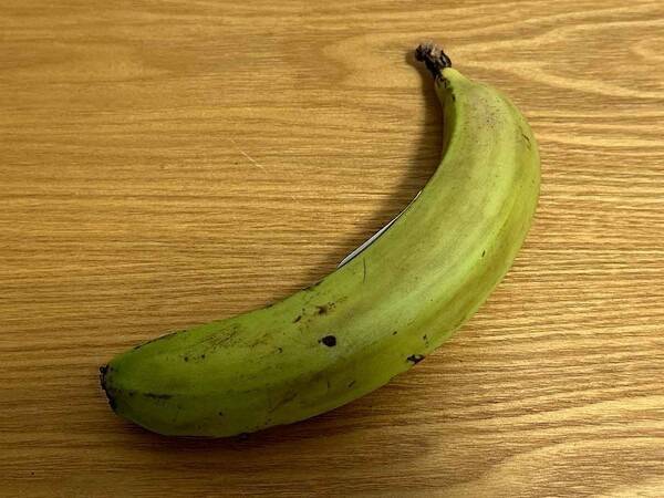 겉은 약간 푸르고 단단한 미숙 바나나는 레지스턴트 스타치(저항성 전분) 함량이 높은 상태입니다.