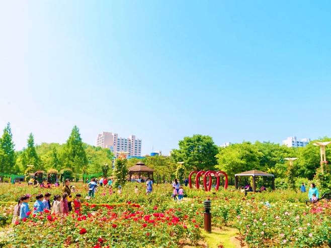 다양한 종류의 장미들이 저마다 고운 색과 향기를 뽐내며 공원을 가득 채운다. 그 사이를 걷다 보면 장미 덩굴이 만든 아치형 길과 조형물들이 연이어 나타나 산책의 재미를 더해준다.