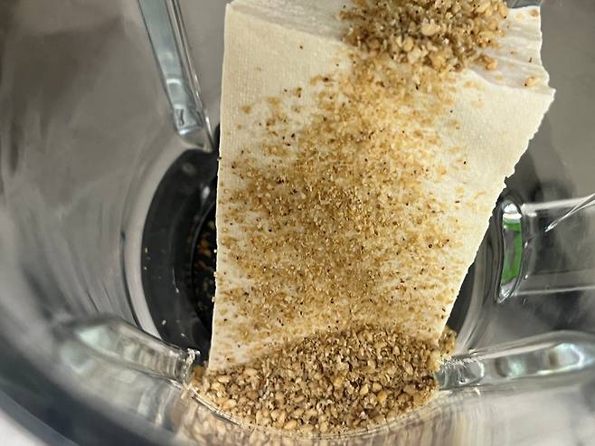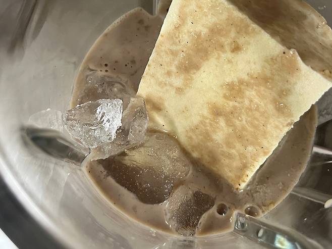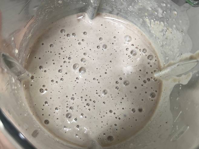 두부는 부드럽기 때문에 순식간에 갈려서 콩물이 완성됩니다. 국수에 부어 드시면 콩국수가 되고, 이대로 디저트처럼 드셔도 좋습니다.