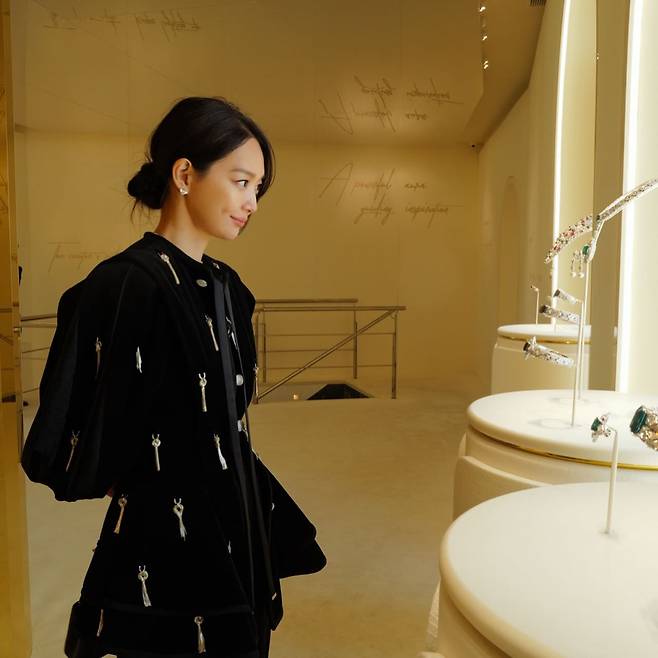 신민아, 루이비통 주얼리 쇼에서 선보인 올블랙 벨벳룩