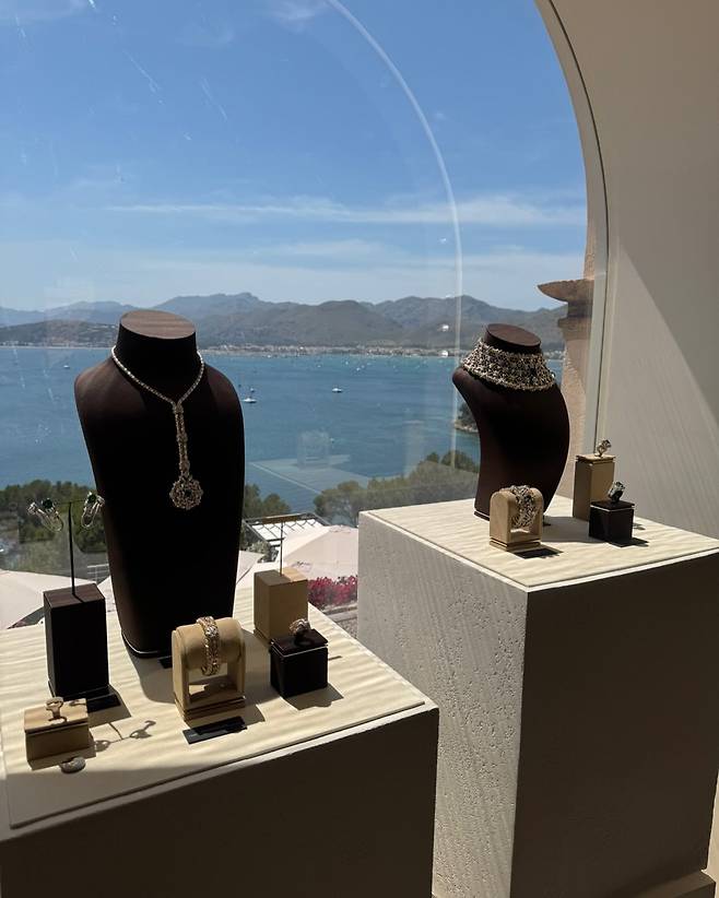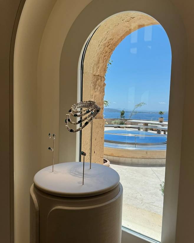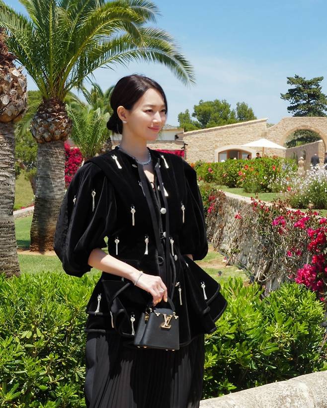 지중해 햇살 아래, 신민아는 루이비통 하이 주얼리 쇼에서 조각처럼 선명한 블랙 룩을 선보였어요.