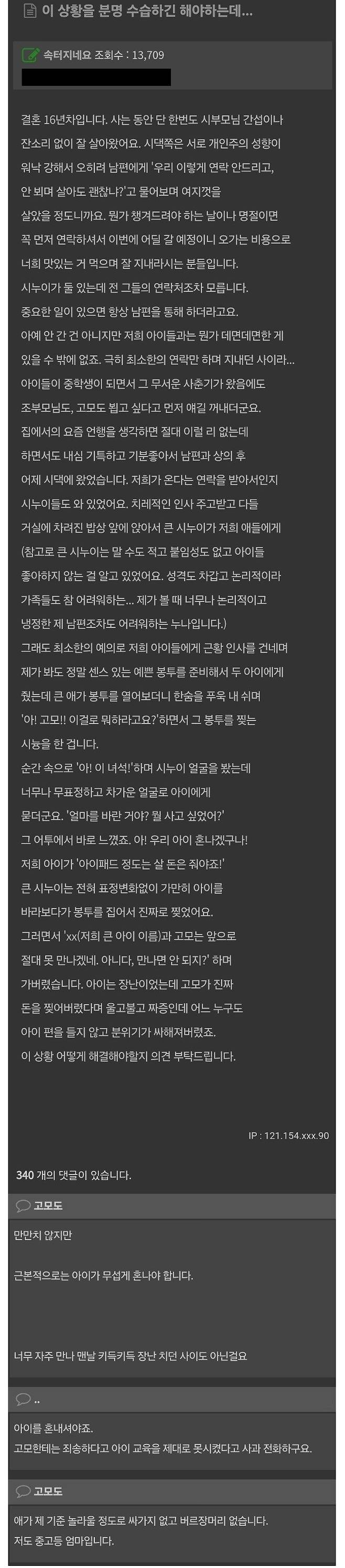 큰 시누이가 아이 앞에서 돈 봉투를 찢은 이유