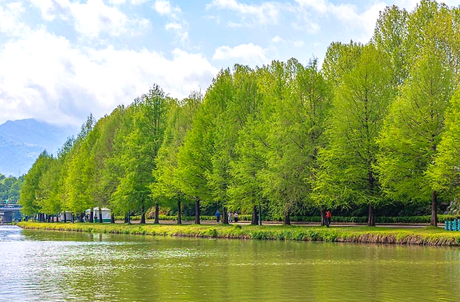 특히 이 마을을 더 특별하게 만드는 건, 바로 옆에 연결된 ‘메타세쿼이아 가로수길’. 울창한 나무들이 길 양쪽을 감싸며 자연스럽게 산책길로 이어져요. 사람의 손길과 자연이 아름답게 조화를 이루는 이 공간에서, 마음 깊은 곳까지 여유가 번져갑니다.