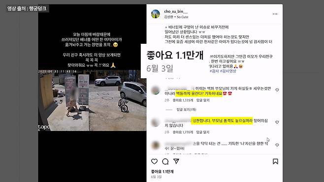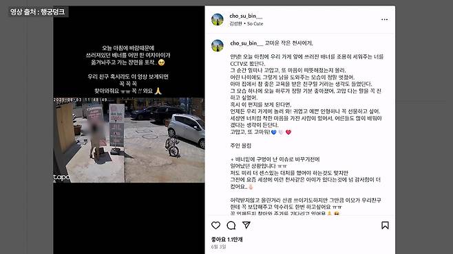 영상은 순식간에 1만 개가 넘는 ‘좋아요’를 받으며 인기를 끌었고, 많은 이들은 “천사가 따로 없다” “부모님의 품격이 보인다” “기특하고 귀여운 아이” 등의 찬사를 쏟아냈습니다. 그렇게 SNS에선 화제의 인물이 됐지만 정작 주인공은 어디로 갔는지 흔적조차 찾을 수 없다고 해요.