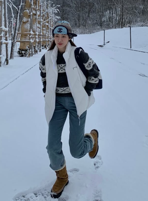 여행 중 찍는 사진은 추억으로 남는데요. 사진 속에서 돋보이고 싶다면 배경과 대비되는 색상을 선택하거나, 액세서리를 적극 활용하면 좋아요. 눈 덮인 풍경에서는 레드나 머스타드 같은 밝은 색의 머플러나 모자가 포인트가 될 수 있습니다.