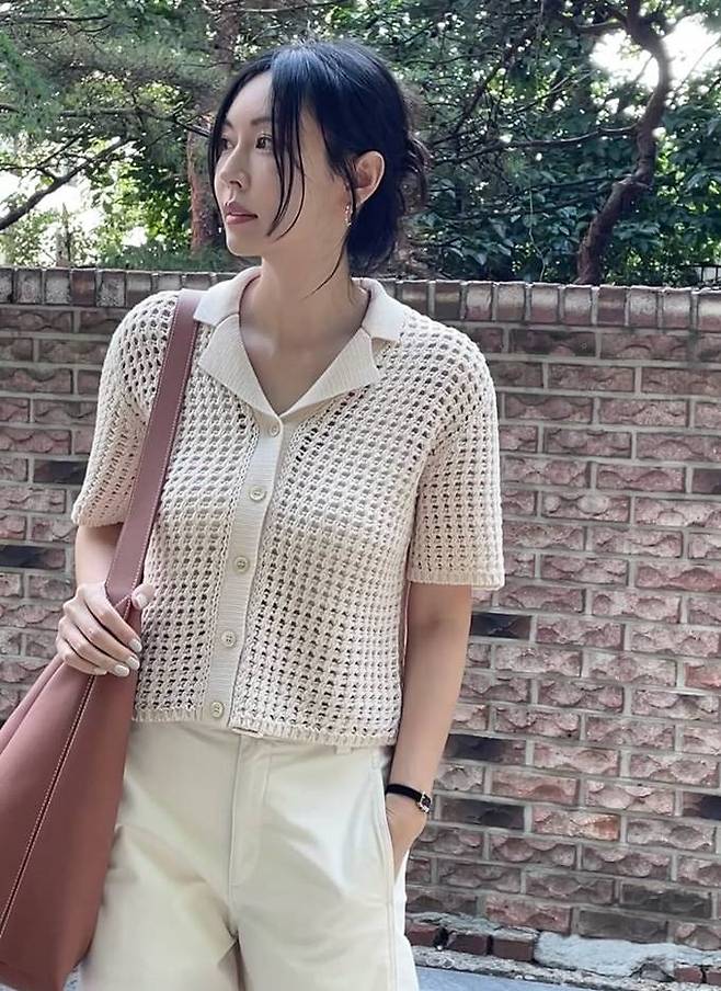 배우 김소연이 구멍이 숭숭 뚫린 포인텔 니트 카디건으로 여름 내추럴 감각의 진수를 선보였다.