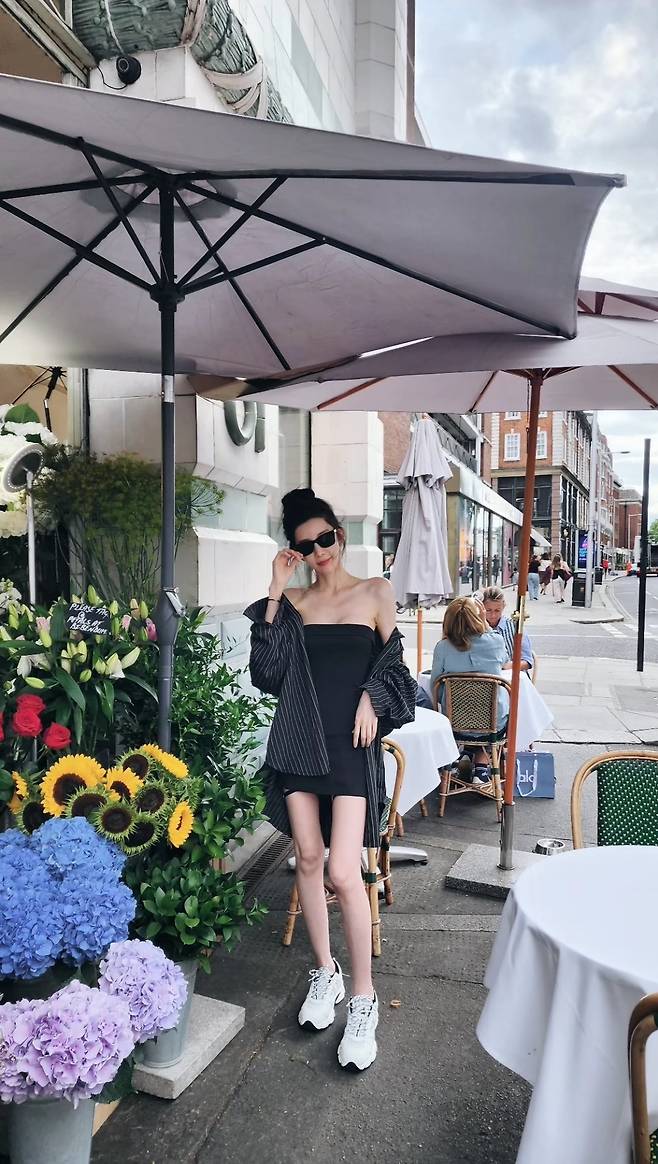 런던의 감성을 가득 담은 카페 테라스 앞에서 여유로운 포즈를 취한 신주아는 화보 같은 일상을 완성하며 변함없는 미모와 감각적인 스타일링을 입증했습니다.