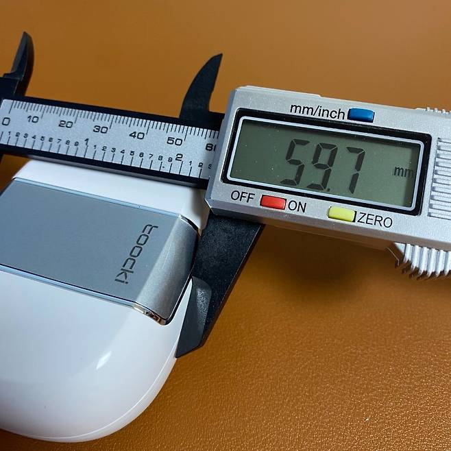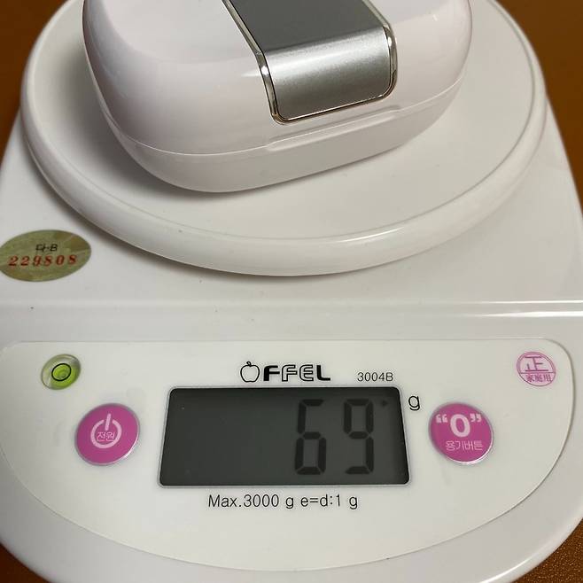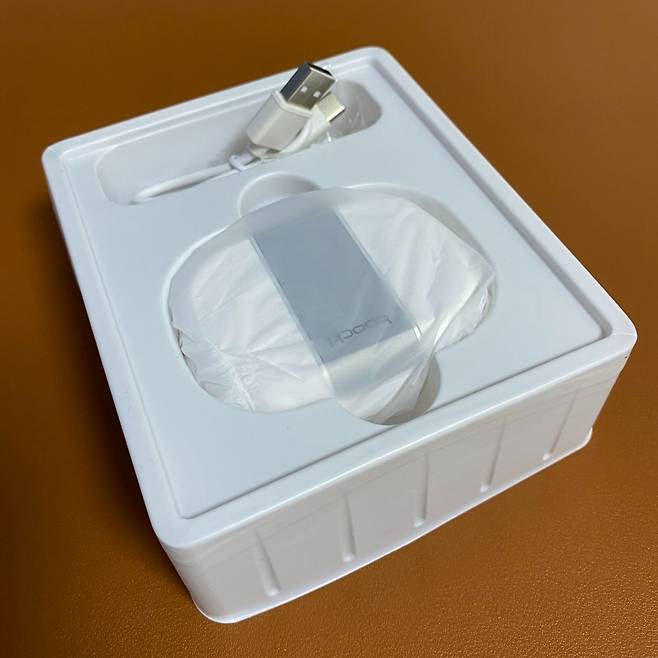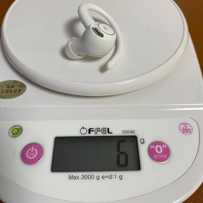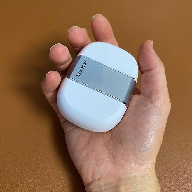 크기는 좀 큰 편입니다. 그렇다고 휴대하지 못할 정도는 아닙니다. 성인 남자 손 안에 딱 들어가는 사이즈이며 가로 80밀리미터, 세로 60밀리미터, 높이 33밀리미터로 신용카드보다 작고 에어팟 3세대보다는 대략 두 배 정도 사이즈입니다. 크기가 큰 이유는 귀걸이 형이기 때문이죠. 그래도 크기에 비해서 무게는 가볍습니다. 69그램으로 주머니에 넣어도 무게감을 느낄 수 없을 정도입니다.