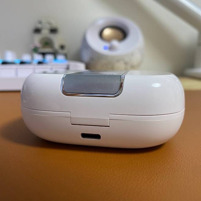 제품 후면에는 USB-C 단자로 유선 충전이 가능합니다. 아쉽게도 무선 충전은 지원되지 않네요. 이 정도의 가격대에서 기대하는 것이 무리일 수도 있습니다.
