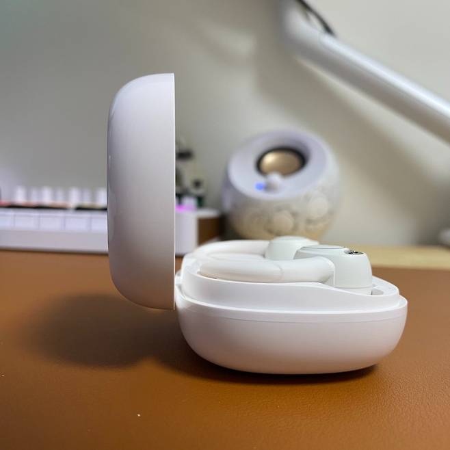 처음 제품을 열면 자동으로 페어링 모드가 되기 때문에 스마트폰이나 노트북에서 바로 기기가 보입니다. 블루투스 5.3을 적용해서인지 페어링 인식하는 속도도 빠르고 연결 속도도 광속입니다. 어떤 제품은 페어링하는 데 한참 기다려야 하잖아요. 이 제품은 기다림이 필요 없네요.
