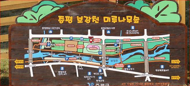 무엇보다도 도심과 맞닿아 있어 접근성이 뛰어나며, 미루나무숲을 중심으로 조성된 ‘보강천 녹색길’은 증평대교에서 장미대교, 산업단지 진입로까지 이어지며 지역민에게 사랑받는 일상 산책로로도 활용되고 있지요.