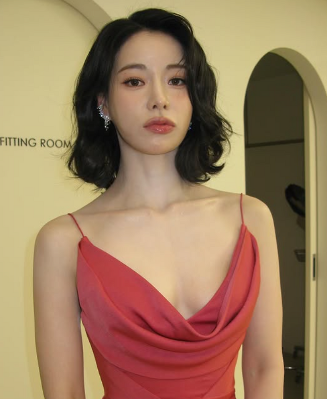 드레스는 바디에 밀착되는 실루엣과 절제된 노출이 조화를 이루며, 도발적이기보다 절제된 우아함이 느껴지는 스타일이었어요.