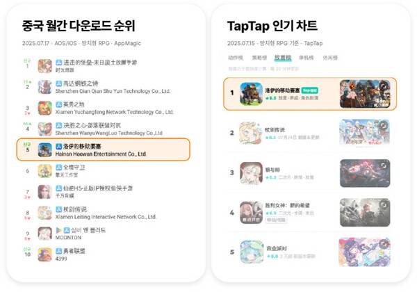 특히 중국 대형 게임 플랫폼 탭탭(TapTap)에서는 방치형 RPG 인기 차트 1위에 올랐다. 현지 유저 평점도 높은 수준을 유지하고 있다.