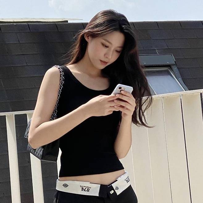 페미닌한 룩을 즐겨입는 설현도 ‘디키즈접어입기’ 유행에 동참했네요. 설현은 블랙 슬리브리스 탑과 함께 시크하게 스타일링 했어요.