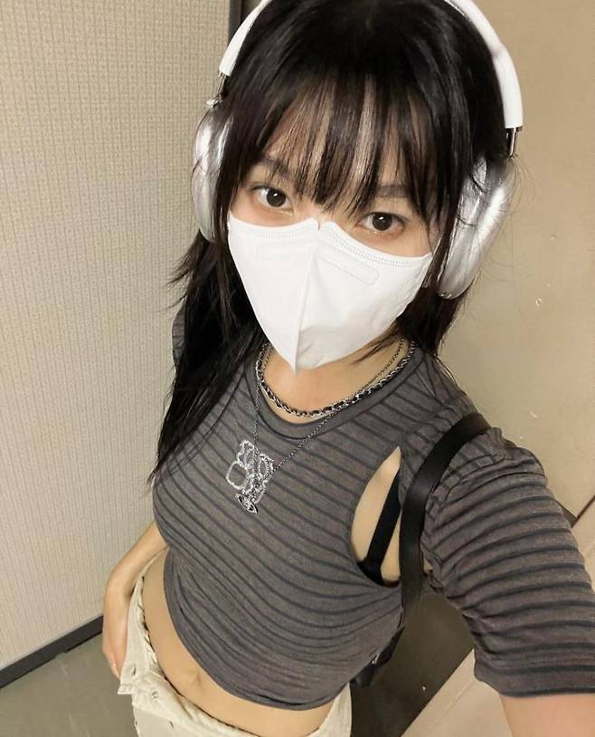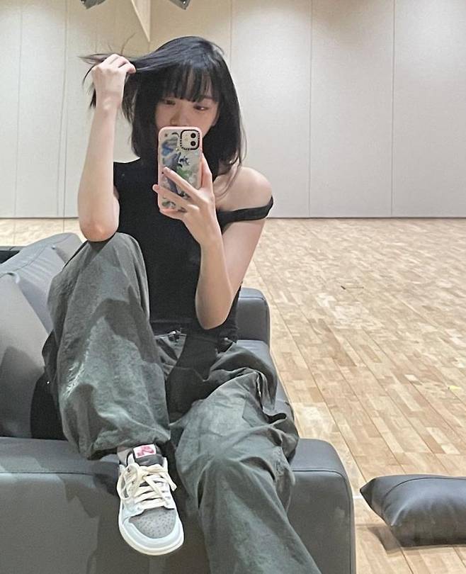 르세라핌의 김채원은 독특한 소재의 카고 팬츠를 나이키 슈즈와 함께 매치했습니다.