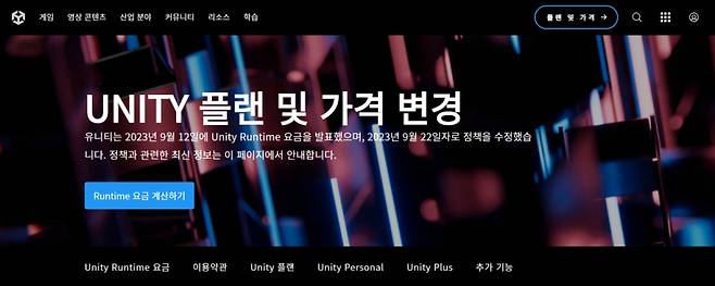 글로벌 최대 게임 개발 엔진 '유니티(Unity)'가 중소·인디게임사에는 게임 다운로드 1회당 추가 요금을 부과하는 새 요금제 '런타임 요금제(the Runtime fee)'를 적용하지 않기로 했다.