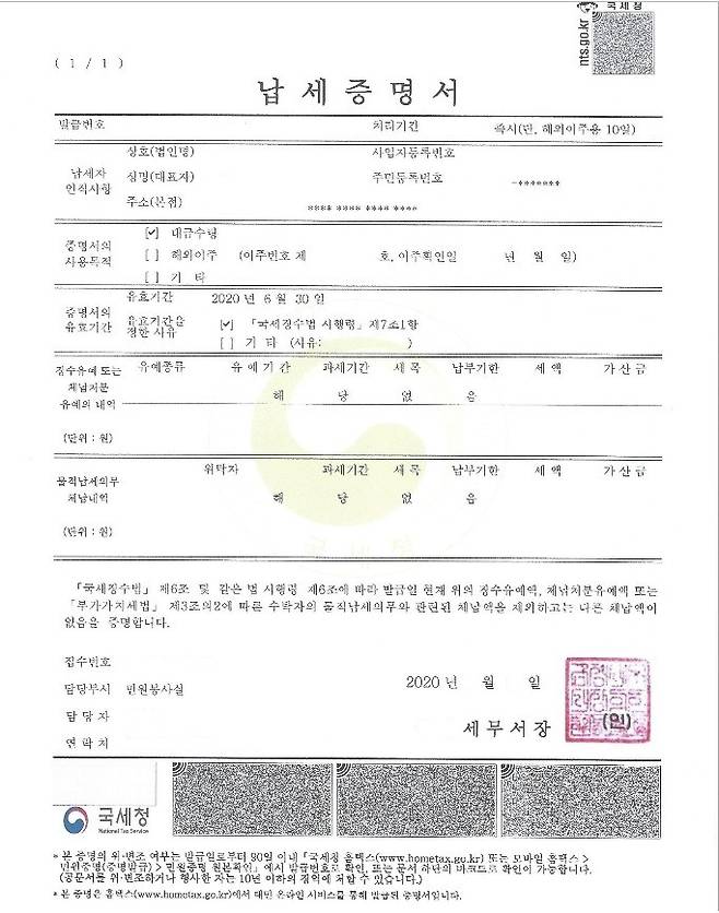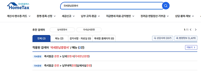 국세완납증명서, 간편하게 인터넷발급 받으세요