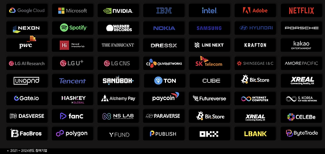 올해 컨퍼런스에는 구글 딥마인드 제미나이 개발 연구진을 비롯, 스포티파이·인텔·LG AI연구원, 삼성전자·세일즈포스 등 국내외 AI·Web3 관련 기업인들이 참가를 확정했다. 그간 컨퍼런스에는 IBM·마이크로소프트·인텔·어도비·텐센트·삼성전자·SK텔레콤 등 세계적 기업들이 참여해 왔다.