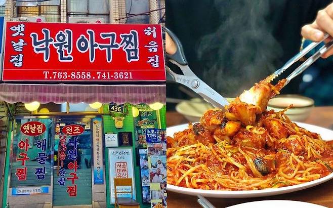 지금의 ‘낙원동 아구찜 거리'를 탄생시킨 이곳. 처음으로 서울에 아구찜을 들여온 이곳은 50년이 넘도록 한자리를 지키고 있는 노포 맛집이며 서울에 몇 안 되는 ‘백년가게'과 ‘서울 미래유산' 명패를 모두 받은 곳이기도 하다. 이곳은 냉동이 아닌 생물 아귀만을 사용하여 쫄깃함과 탱글함이 살아있으며 바다향 가득한 미더덕과 아삭함이 살아있는 콩나물까지 더해져 더할 나위 없이 푸짐한 한 끼를 즐길 수 있다. 김치 대신 제공되는 새콤달콤한 동치미는 매콤한 아구찜과 완벽한 조합을 자랑한다고. 아구찜을 다 먹은 후 날치알이 듬뿍 얹어져 나오는 볶음밥으로 마무리하는 것도 잊지 말자.