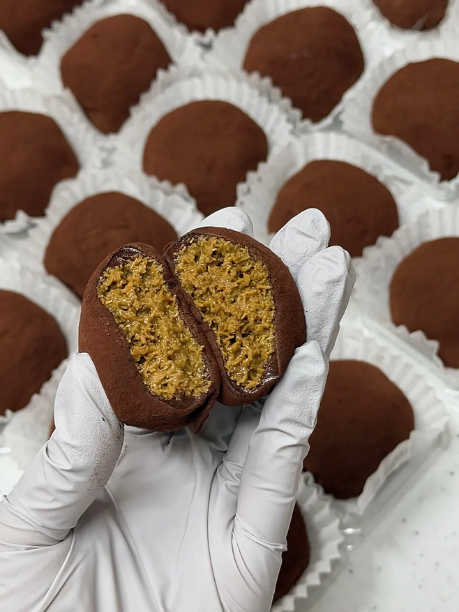 요즘 핫한 두바이 쫀득 쿠키, 일명 두쫀쿠.카다이프 면에 화이트 초콜릿과 피스타치오 스프레드를 섞고 버터와 마시멜로까지 더한 고급 수제 디저트예요.