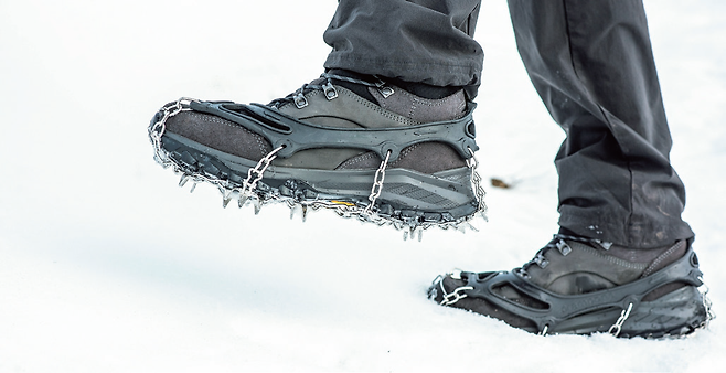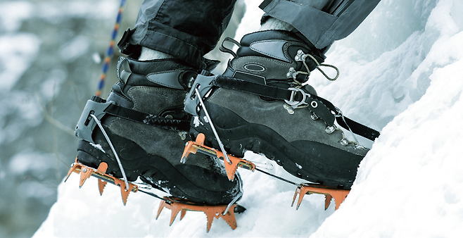 설산에선 크램폰과 아이젠 없이는 한 발자국 떼는 것조차 쉽지 않다.