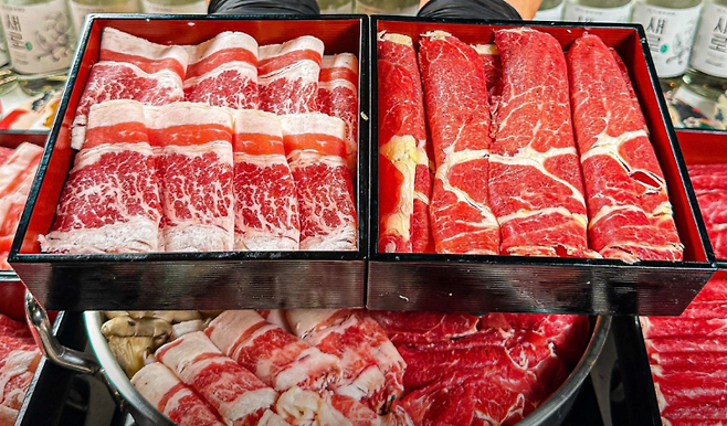 ▶ 신선한 소목심·우삼겹 중심의 고기 구성으로, 냉동 고기 특유의 아쉬움이 적다는 후기가 많습니다.