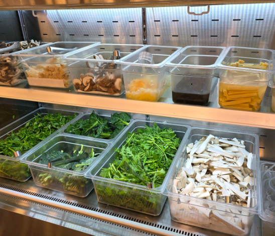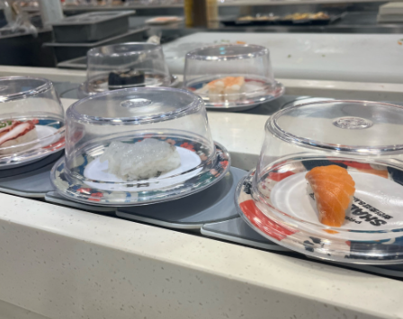 ▶ 중앙 회전 레일을 따라 초밥이 계속 돌아가 “샤브 먹다 초밥, 초밥 먹다 샤브”가 자연스럽게 이어집니다.