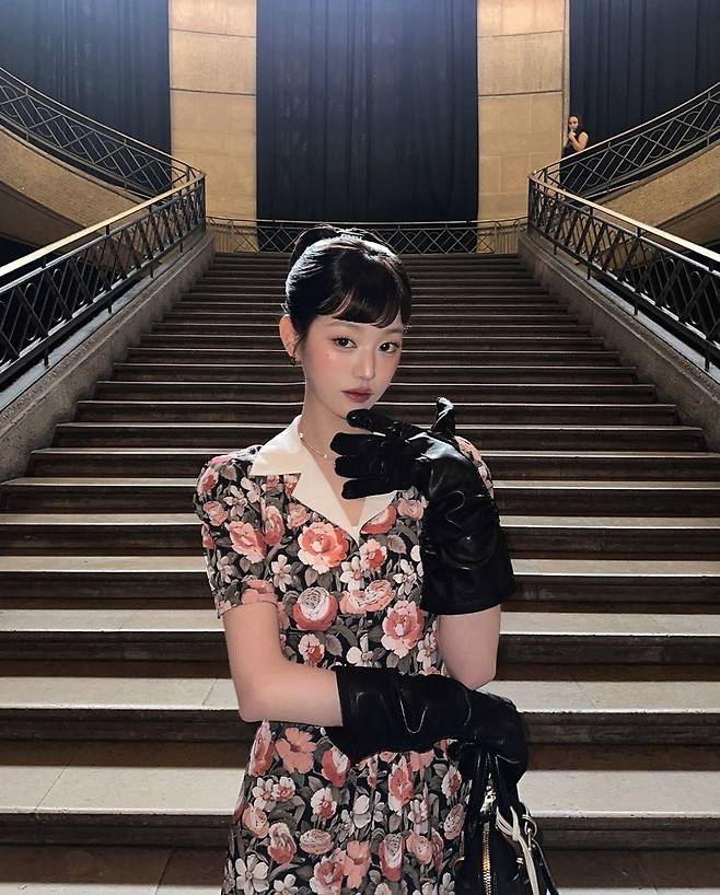 장원영은 플로럴 패턴의 빈티지한 무드를 지닌 드레스를 착용해 우아하면서도 감각적인 분위기를 연출했습니다.