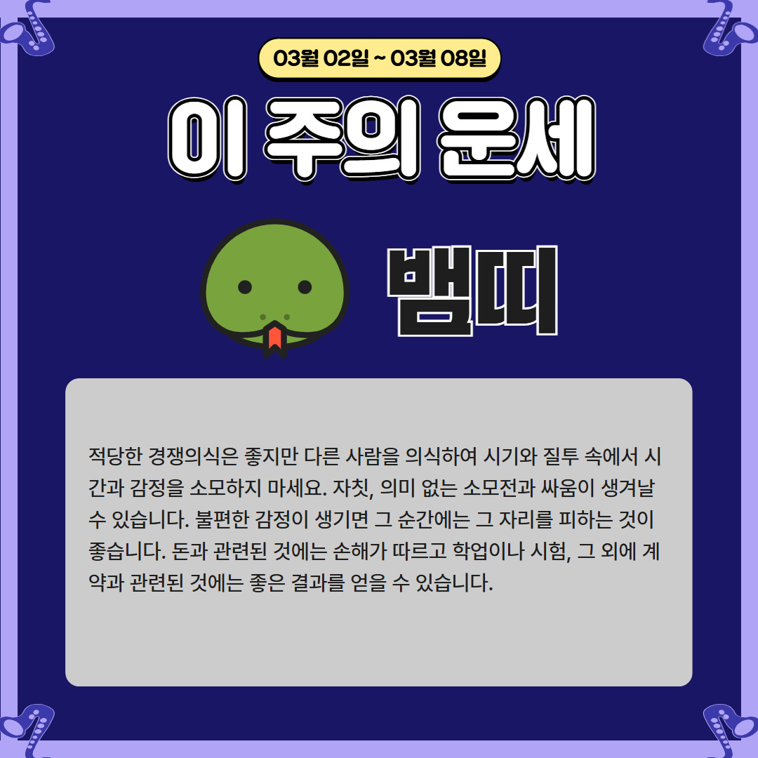 이번 주 뱀띠 운세