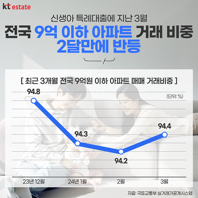 [Remark] 신생아 특례대출 영향… 전국 9억원 이하 아파트 거래 비중 증가