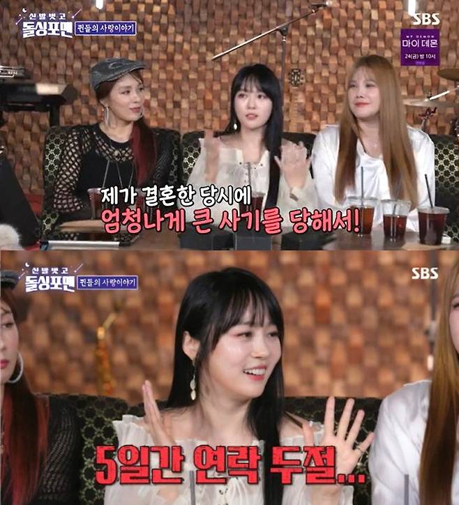 가수 이수영은 최근 SBS ‘신발벗고 돌싱포맨’에 출연해 결혼 전 남편에게 자신의 빚을 공개했다가 연락이 두절됐던 사연을 고백했다.
