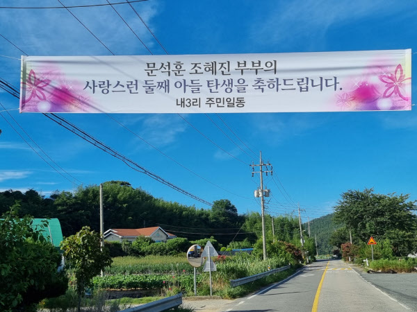 충남 태안군 이원면 내3리. 총 인구가 178명인 지방 소도시인 이 곳에 지난해 독특한 축하 현수막이 내걸렸다. ‘문석훈·조혜진 부부의 사랑스런 둘째 아들 탄생을 축하합니다-이원면 지역발전협의회’, ‘우리 아기가 태어났어요, 무럭무럭 튼튼하게 자라만 주렴-이원초등학교 학부모·교직원 일동’ 등이라고 적힌 현수막이다.