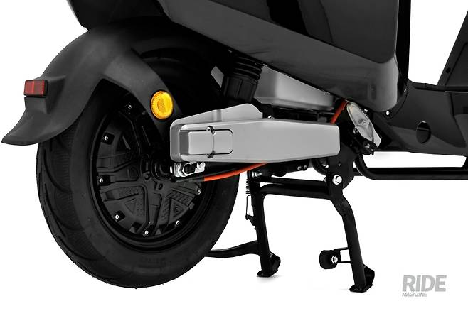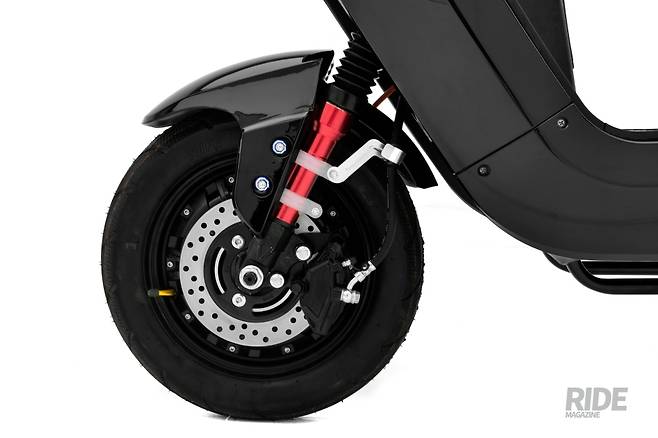 앞서 이야기 한 것처럼 미니쿠 듀얼은 정격 800W 출력을 가진 BLDC 모터가 앞, 뒤 휠에 동일하게 적용되었다. 듀얼모터는 싱글모터 대비 매우 힘 있고 안정적인 주행성능을 가지고 있다. 2륜구동과 4륜구동 차량의 주행성능 차이를 생각하면 이해가 빠를 것이다. 타이어는 튜브리스 타입의 14*3.0인치 광폭 타이어가 장착되었다.