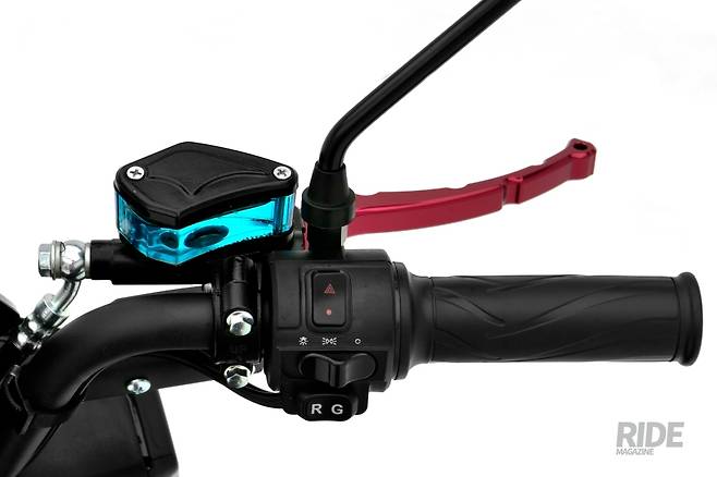 주행 단 수 버튼에 R이라고 쓰여 있는 버튼이 있는데, 이는 후진을 위한 버튼으로 버튼을 누른 채 스로틀을 조작하면 후진을 할 수 있다. 이는 전동스쿠터는 물론 일반 내연기관 스쿠터들에서도 좀처럼 볼 수 없는 기능이다. 왼쪽에는 방향지시등 조작 버튼과 경격, 모터정지 조작 버튼이 있으며 앞서 이야기 했던 싱글/듀얼 모터 조작버튼이 위치하고 있다.