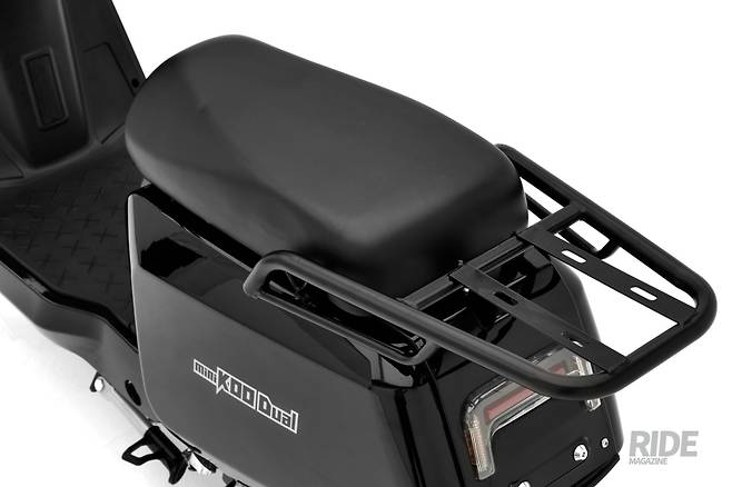 전동스쿠터를 타다보면 한 가지 아쉬운 점이 있다. 바로 수납공간이다. 미니쿠 듀얼은 이러한 단점을 보완하기 위해 리어 탑박스 장착이 가능한 브래킷이 기본 장착되어 있으며 실생활에서 유용하게 사용할 수 있는 봉지걸이, 개방형 글러브 박스가 기본 제공된다. 또한 글러브 박스 안쪽에는 5V 1A USB 충전포트가 기본구성으로 제공되어 구입 후 부수적인 지출 요소가 없다. 스마트키 또한 기본 구성품으로, 원격시동과 도난방지 기능이 탑재되어 있다.