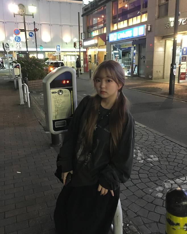 김윤희는 블랙 맨투맨과 롱스커트를 매치해 시크하고 차분한 무드를 강조했다. 어두운 배경의 도시 풍경과 어우러져 세련된 느낌을 더하며, 심플하면서도 강렬한 올블랙 스타일링으로 밤거리에서도 돋보이는 존재감을 드러냈다.