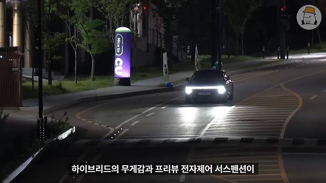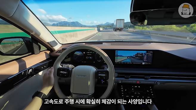 가속감도 훌륭했습니다. 모터가 꾸준하게 어시스트를 해주면서 고속 합류구간이나 추월을 할 때 이 거대한 차체를 꽤나 시원시원하게 끌어줍니다. 특히 고속 속도로 주행을 할 때 만족도가 높았는데요. 새로운 3세대 플랫폼이 적용되면서 낮아진 무게중심, 상대적으로 가벼운 무게의 1.6 파워트레인과 차체 뒤쪽을 눌러주는 하이브리드 배터리가 균형을 잡아주면서 안정감을 더해주는 모양이에요. 대대로 현대차들이 고속으로 갈수록 '붕 뜨는 듯한' 느낌으로 욕을 많이 먹었는데, 3세대 플랫폼이 등장한 이후로는 말 그대로 옛말이 됐습니다.