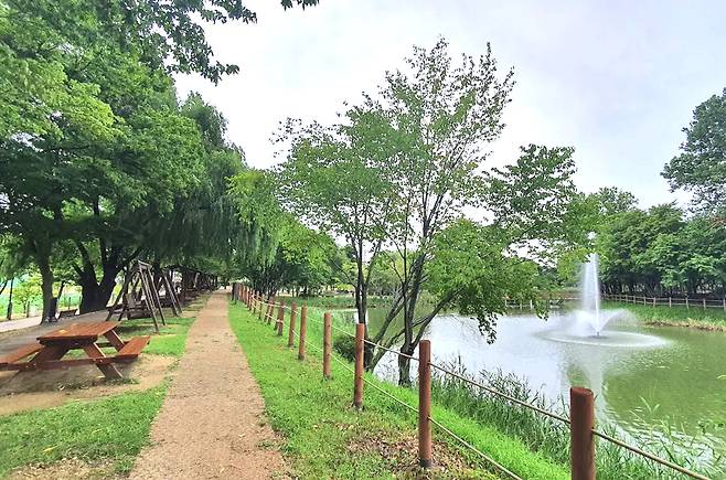 공원 곳곳에는 정자와 벤치, 파라솔이 설치되어 있어 햇살 아래 잠시 쉬어가기 좋고, 산책로는 자전거길과 분리되어 있어 더욱 안전하게 자연을 즐길 수 있습니다. 해질 무렵이면 연못 위로 노을이 번지고, 초록빛 풍경이 물들어가는 모습은 잊기 어려운 장면을 선사하죠.