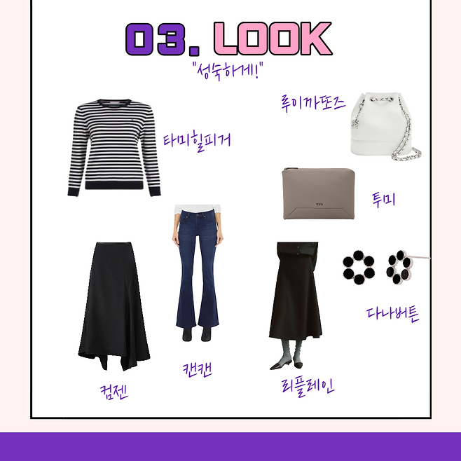 세번째 룩은 좀 더 여성스럽고 성숙해보이게 코디해봤어!